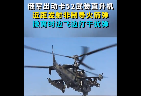 俄军出动卡52武装直升机:近距发射非制导火箭弹 打干扰弹撤离