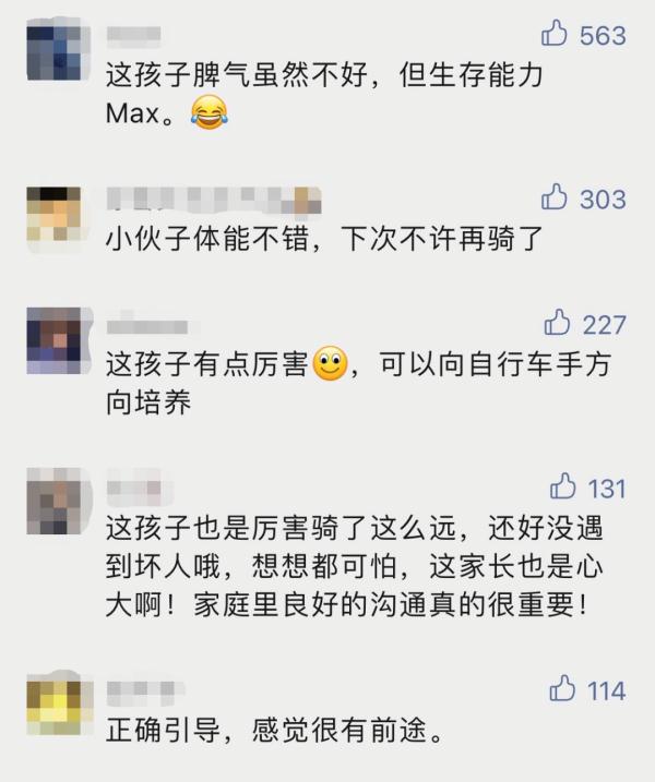 经了解,男孩前一天晚上因学习问题与父母发生激烈争吵,心里烦闷憋屈,想去看看大海,于是便一路骑行,直至被民警找到。