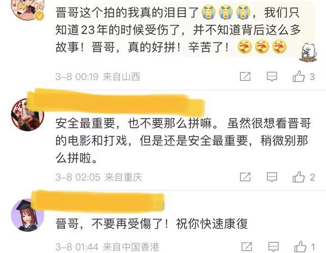 张晋的粉丝知道偶像生病后,也很是心疼和着急,个个都在评论区里喊张晋早日好起来,期待他的新作品,都叫张晋不要那么的拼命了!看得出了粉丝都很心疼这位武打偶像,动作演员受伤是在所难免的,不过还是要珍惜自己的身体。希望新电影大卖,很多人说张晋如果再不出来拍新作品,武术届都要垮了,看来大家都很认可张晋的武术,那就期待他的《陌路狂刀》吧!