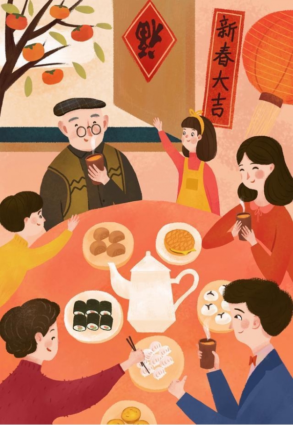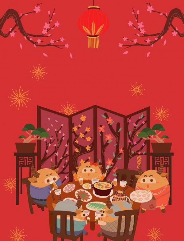 要守岁、吃年夜饭:守岁就是在大年三十等着过年,这意味着我们要珍惜时光,珍惜时光。而所谓的"年夜饭",就是一家人坐在一张桌子上,享受着美味的饭菜。年夜饭通常有很多种类的食物,如鱼,肉,蔬菜,这是一家人合家欢乐的意思。这个风俗突出了家族的意义以及感情的力量。