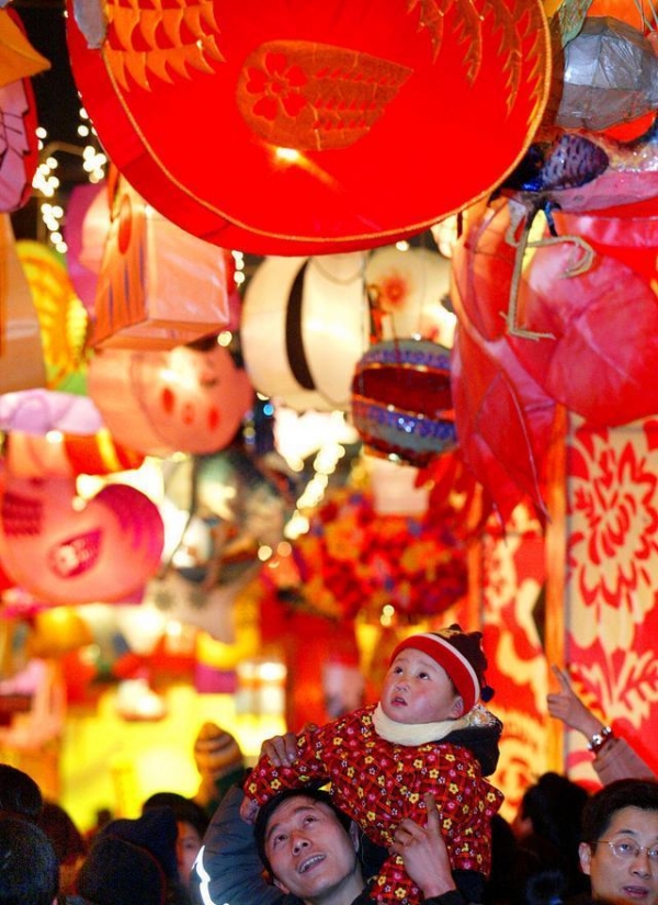 点灯:大年三十晚上,家家户户都要把大红灯笼悬挂在门口,以驱走黑夜,迎接来年的到来。大红的灯笼象征着吉祥,幸福,兴旺,而点灯则代表着幸运与幸福。如今,许多家庭的夜间照明都换成了灯泡,意思差不多。