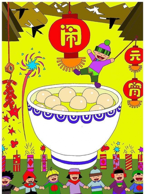 元宵》在南方,新年前夕必须要吃元宵。元宵之"圆"有"团圆"之意,又有"完满"之意,表示家庭和睦,幸福美满。