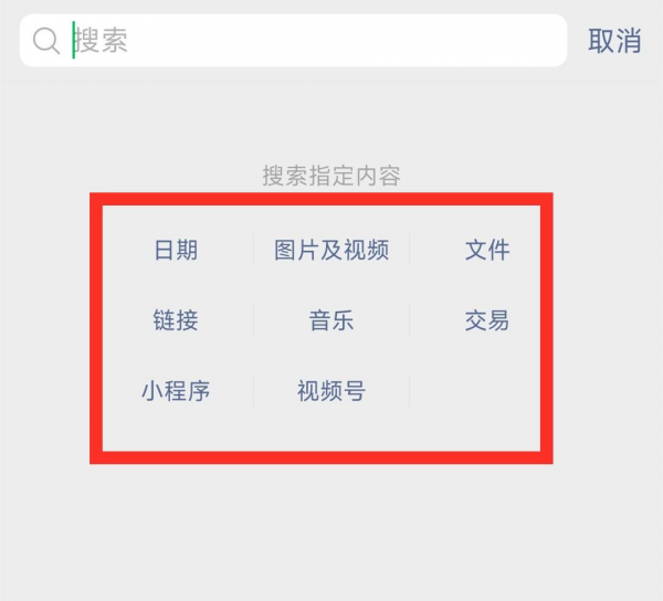 接着会弹出相关查询菜单,例如"日期"、"图片和视频"、"文件"、"交易"等等。通过这些选项,我们可以进行相应的查询。