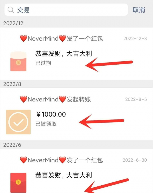 除了日期查询,我们还可以点击"交易"。在交易中,我们可以看到具体的交易记录,如红包和转账等。如果在交易记录中出现一些敏感的数字,比如520、1314、1599、258、528等,就可能意味着这个好友与我们的对方关系不寻常!