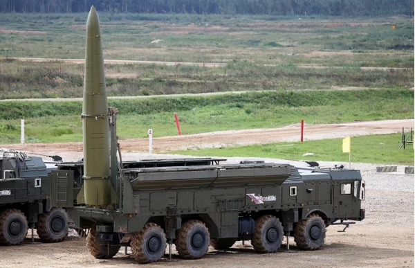 (俄军"伊斯坎德尔-M"短程弹道导弹,这种导弹速度快、精度高、威力大,是俄军最重要的远程精确打击武器)