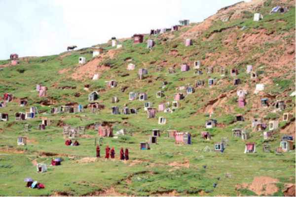 因为亚青寺的觉姆们如果想要提高自己的修为,就要在自己搭建的棚子当中闭关多日,而且每天要闭关四次。