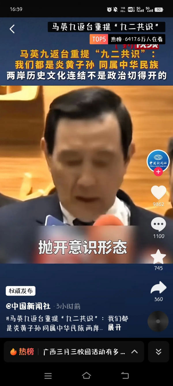 最后,马英九先生回岛后,进一步强调了,九化共识对两岸统一的重要性,呼吁台当局,国民党以及其他岛内政党,放下政治偏见,停止内斗,改变政策,接近大陆,靠近大陆,向祖国靠拢,打造一个良好的政治氛围。呼吁岛内年轻人加强对两岸统一文化的认同,改变对大陆的看法,多多与大陆青年交流,共同开创青年复兴民族伟业新篇章。