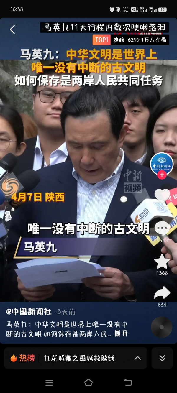 两岸同根同源,同处中华文化圈,都是炎黄子孙,我们的情感和思想得以共鸣。马英九先生说:中华文明是当今世界上唯一没断流的古文明,如何保护并加以发展,是两岸人民共同的任务。新时代下,两岸局势愈发严峻,以蔡英文,赖清德为首的台当局违背历史潮流,打出台独的名号,篡改教科书,洗脑台湾年轻人,企图阻碍两岸统一,在此情况下,马英九先生这次造访大陆显得十分有必要,不仅能够紧紧加强两岸联系,深化九二共识,还能增强两岸对中华文化,中华文明的认同感,增强文化自信,为两岸文化进一步交流做好铺垫。