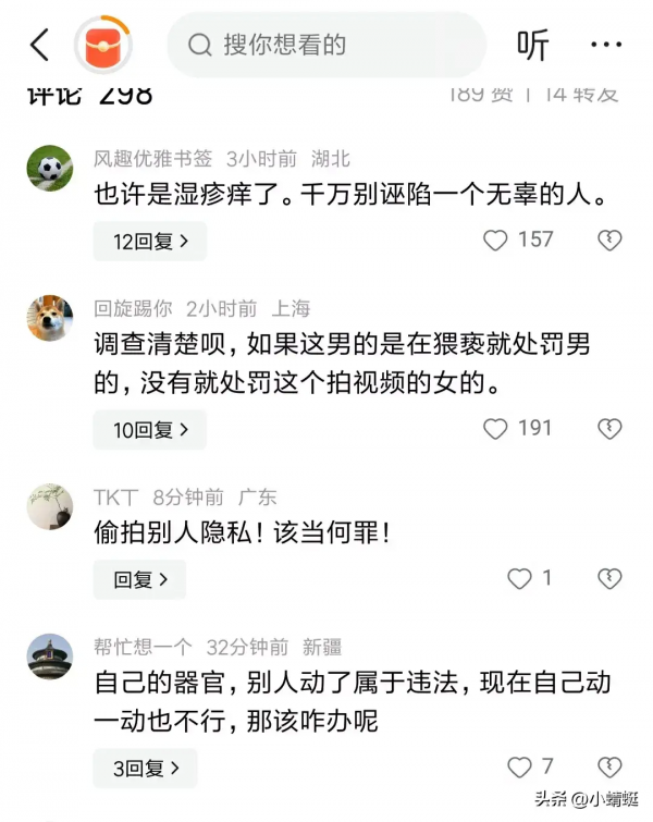 然而有网友认为,这名男子猥亵行为存在争议,男子有可能是抓痒挠痒,他没有靠近女生,也没有脱衣服,也没有言语猥亵,所以男子有可能被冤枉了,而王女士自我保护意识没错,但是偷拍反而是侵犯了男子的隐私。