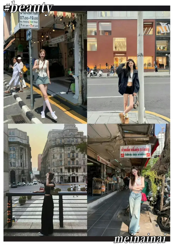 根据不同风格的旅游地,奈奈设计了不同的拍照姿势。