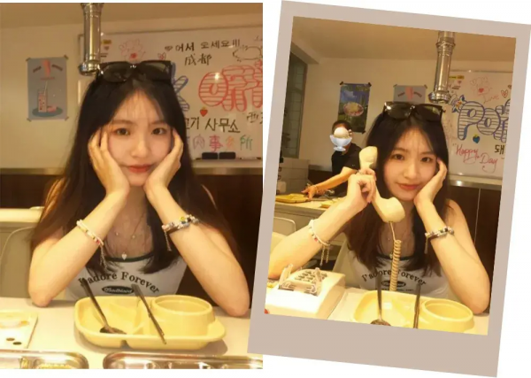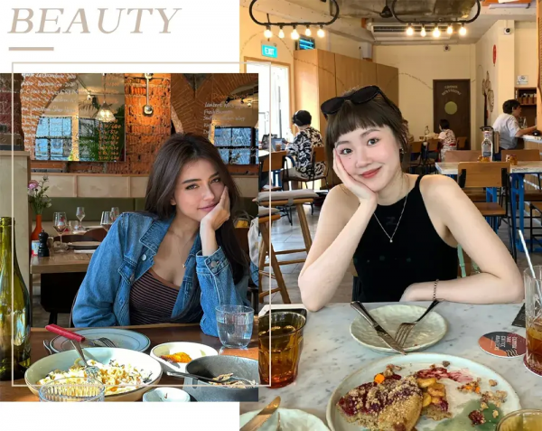 既然是在吃饭,那就拿起手边的食物一起互动,或举起来假装要吃,或举起杯子、刀叉甜甜微笑,男友视角的餐厅照这不就get了嘛~