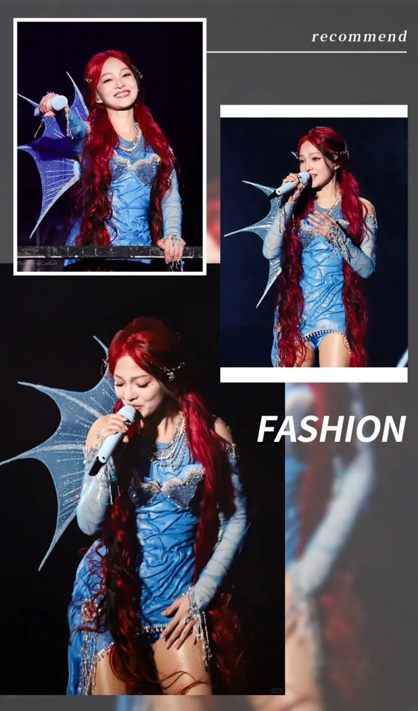 这些造型不仅契合演唱会的主题,还融入了异域和奇幻感。造型老师尊嘟很有创意,把张韶涵的优势发挥的很好,加鸡腿!