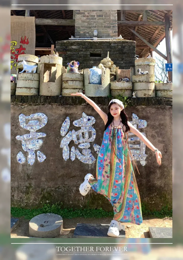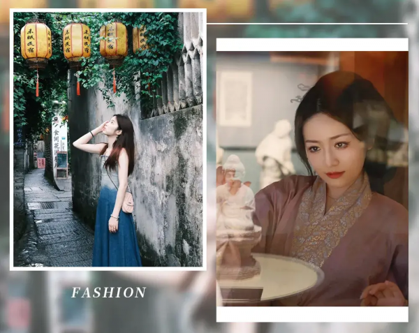 而在古镇、博物馆这些地方呢,就需要收一点了。只需要微笑、侧身或者目光看向别处就好了,营造出恬静的氛围。