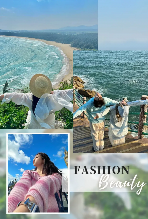 或举起双手拥抱大自然,或镜头拉近一点甜笑,或掐腰抬腿,可以夸张一点,最后成片就刚刚好。