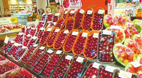 在守敬南路一家超市,车厘子每500克售价49元。"女儿喜欢吃车厘子,我经常买。上周,一斤车厘子售价还是58元。"市民王女士说,这车厘子降价太快了,同样购买一盒相差四五元。