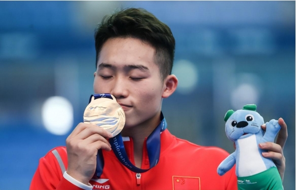 王宗源的每一跳都像是一首诗,他在空中铺陈的身体线条,就如同诗句中流淌的韵律与意象。他的跳水不仅是对技巧的展示,更是对美的追求。在这个属于他的夜晚,他不仅赢得了金牌,更赢得了观众心中"跳板上的诗人"的美誉。他用一次次完美的跳跃,向世界证明,即使在最激烈的竞争中,也可以保持风度与美感。