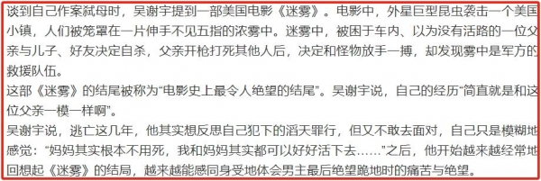 GRE成绩排进全球前50,本来以为能让母亲高兴,但是家里经济条件有限,供不起他去美国留学,母亲又不愿意朝亲戚借钱,这也成了压垮吴谢宇的最后一根稻草。从小没有朋友,只喜欢刷剧看小说的他开始分不清现实和剧情,这才有了弑母的想法。
