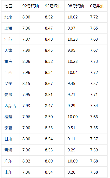 2024年6月1日国内92号汽油、95号汽油、98号汽油、0号柴油最新零售价格。(此价格整理中石化和中石油价格只提供参考!)