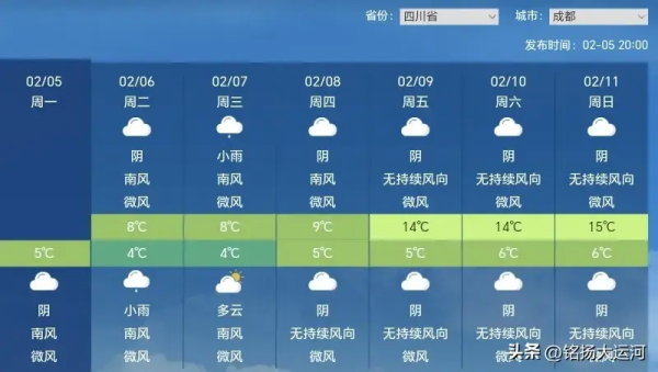 后天(2月7号),四川的天气又将为我们带来新的故事。四川盆地的每个城市,将有小雨或零星小雨的轻轻洒落,仿佛是大自然的轻柔低语。