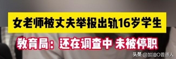 近日,教育界曝光新年的第一个大瓜:上海市一所高中的女教师张真真(化名),被老公吴先生实名举报。吴先生举报张真真和16岁的高一的学生发生不正常男女关系,还曝光了她们之间的不雅聊天记录与照片。聊天记录中女教师主动挑逗男学生,很多词语不堪入目。很难想象,这是一个年轻女教师做出来的事情。