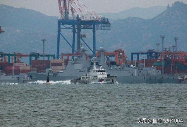 驻金门岛的网民拍摄到了距离金门只有几海里的大陆海军1艘7000吨级的052D型防空驱逐舰,与在厦金海域执行常态化执法巡查行动的大陆海警巡逻舰擦肩而过的照片。