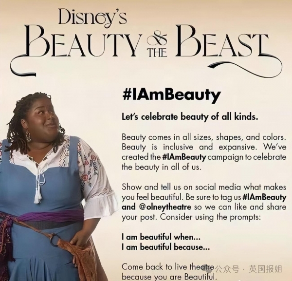 当我小时候读到这个童话的时候,贝儿并没有被描述成一个大码女孩,很明显,她也不是黑人,因为这个童话是法国的。所以,选这个角色的理由到底是什么?"