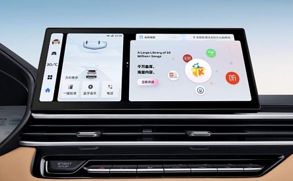 另外,新车继续配备12.3英寸中控屏+10.25英寸全液晶仪表,搭载E02新一代高性能数字座舱平台,匹配银河OS车机系统,增加多款APP应用。支持手机APP远程启动发动机/空调等,还可以让手机与车机无缝连接,并具有语音交互控制系统、在线智能导航、云端0TA升级等功能。