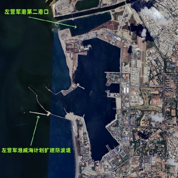 除陈建仁、绿营媒体这些跳梁小丑的离谱言论外,台湾当局确实正火急火燎地为"即将爆发的冲突"做准备。比如台湾当局正大力建设所谓的"威海计划",在现有左营海军军港北侧新建一个港池,并配套建有营房和码头,届时伪海军在左营海军基地将有2个出口。