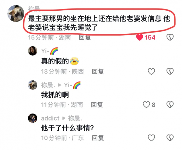 有网友表示,最主要那男的坐在地上还在给他老婆发信息。哈哈,简直离谱