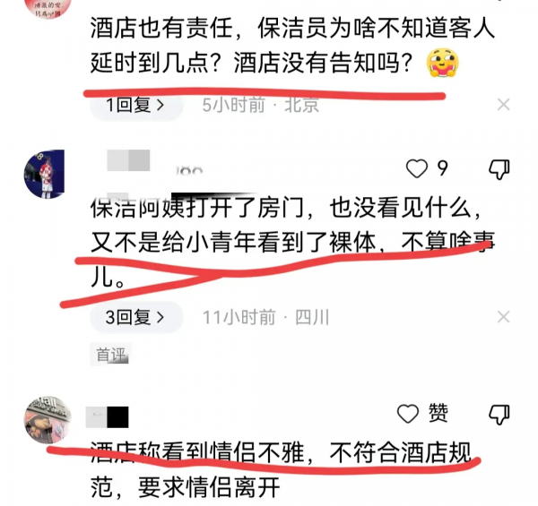 网友们认为,酒店在这起事件中也有一定的责任。为什么保洁员没有知道客人延时退房的事情?难道酒店没有通知保洁员吗?这似乎是对酒店管理的一种不负责任的表现。作为一个专业的服务机构,酒店应该确保顾客的隐私得到妥善保护,而不是草率地对待客人的请求。