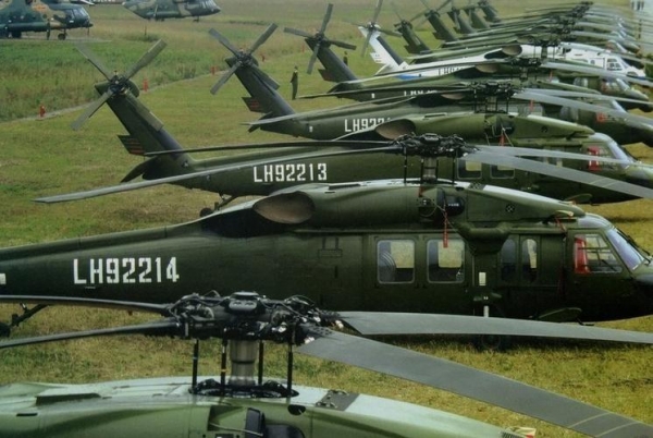 而要说知名度最高的同源武器,恐怕就是国内的黑鹰直升机以及台湾地区的 S70系列直升机。大陆的黑鹰直升机来自于中美蜜月期,在1984年的时候向美国订购了24架民用版本的S70直升机,而且一直使用至今,目前在陆军航空兵部队的地位依旧不低,可见黑鹰系列直升机确实是一种相当不错的多用途,10吨级直升机。近些年来大陆研制成功的直20直升机,所以黑鹰直升机的地位有所下降,不过这些直升机已经有足够高的实用价值,所以暂时没有必要完全退役掉。在国内购买了黑鹰直升机之后,台湾地区在90年代初期也从美国购买了黑鹰系列直升机,军舰上也有一部分反潜直升机。