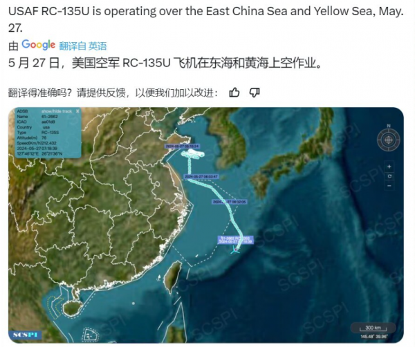 有专家分析,主要是因为解放军这几天进行的"联合利剑-2024A"军演,保密性太强,解放军官宣时美军才反应过来,迅速将其他型号的RC-135都派去台海附近侦察解放军动向了。
