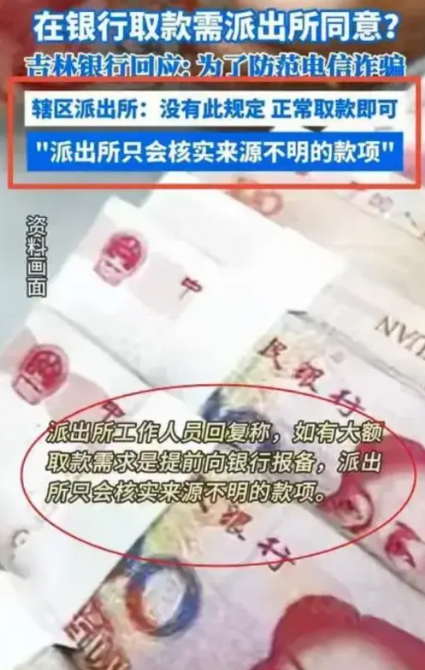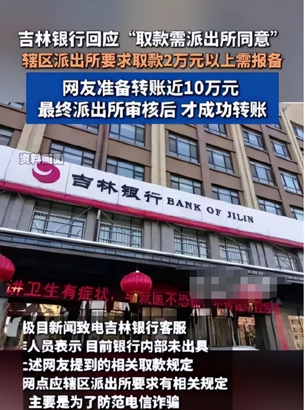 面对这样的强烈质疑和狠批。银行方面也及时作出了回应。工作人员解释称。引发争议的"需获得派出所同意"这一说法有失准确。只是工作人员为防范诈骗行为产生的一种预防性提示而已。