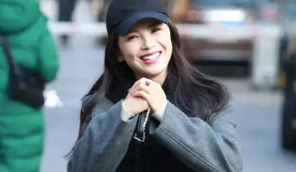 刘涛头戴黑色棒球帽,脚踩黑色皮鞋,这样的搭配既增添了时尚感,又展现出她的休闲与自信。她留着迷人的披肩长发,飘动的发丝散发着一种自然而迷人的魅力。染着红色的嘴唇更是成为整个妆容的亮点,为她的外表增添了一份诱人的魅力。