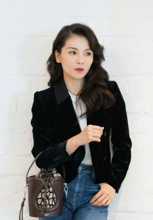黑色西装外套+白色圆领内搭+牛仔阔腿裤:这一穿搭突显出刘涛的优雅和知性,同时也不失时尚感。