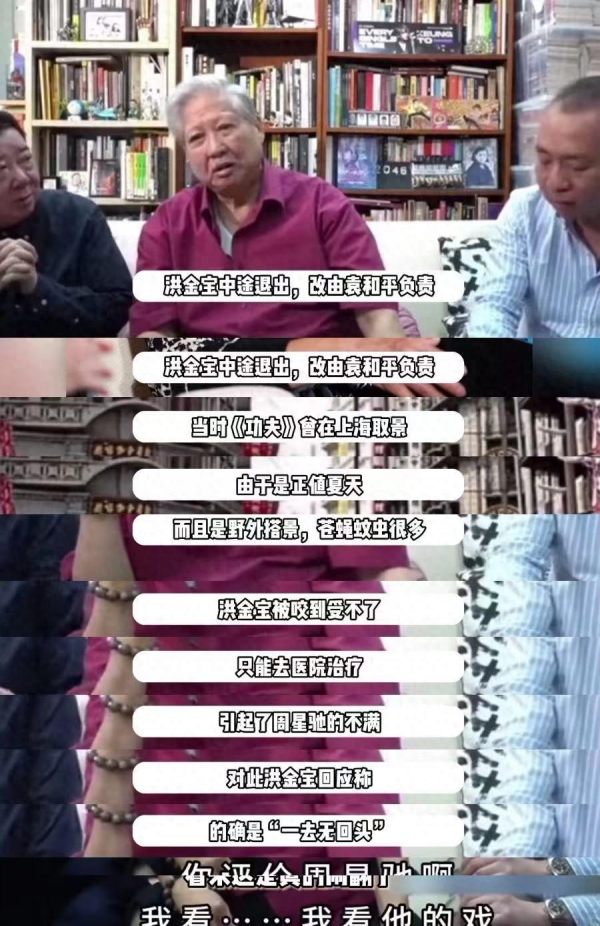 主持人说当年传闻是因为上海蚊子太多,洪金宝被咬到受不了跑回香港,引起周星驰不满。对此洪金宝回应,确认是回去就没回来。他说自己回香港看医生,后来周星驰叫他不用回来拍了,接着主持人再追问他对周星驰的评价,洪金宝拒绝评价。