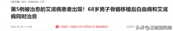 随后另外一则消息又再次引起大家的关注:第5例被治愈的艾滋病患者出现!