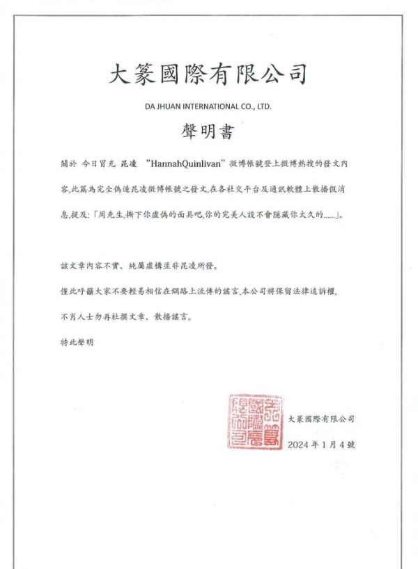 没过多久,昆凌方面也透过经纪公司正式辟谣了,称是遭到有人伪造了昆凌的账号发文,并呼吁广大网友不要轻信谣言。
