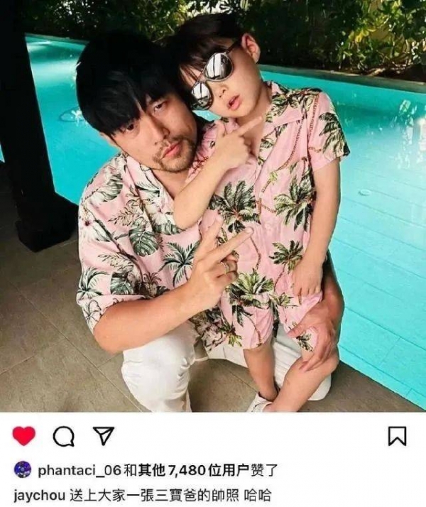 逼得周杰伦赶紧又发了一条跟儿子的照片,自称"三宝爸"化解风波。