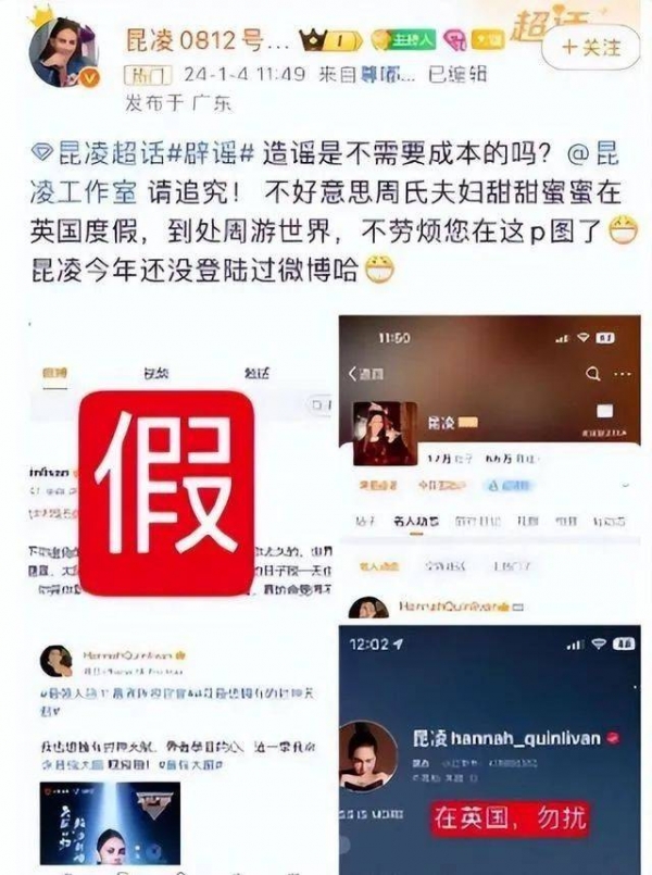 随后昆凌后援会粉丝立刻辟谣,称是有人恶意p图,昆凌一直在跟周杰伦周游世界。