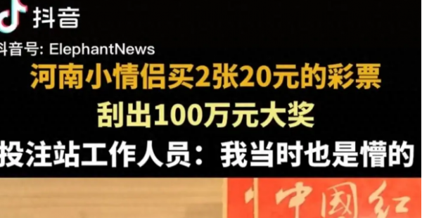 最近,在河南郑州,有人在路过彩票店时顺便买了两张20元的刮刮乐彩票,意外地中了100元大奖。