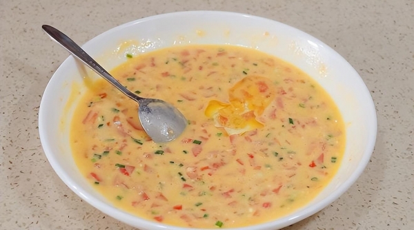1、将西红柿切成小块,加入鸡蛋、面粉或者火腿肠搅拌均匀,再加入适量的盐调味。