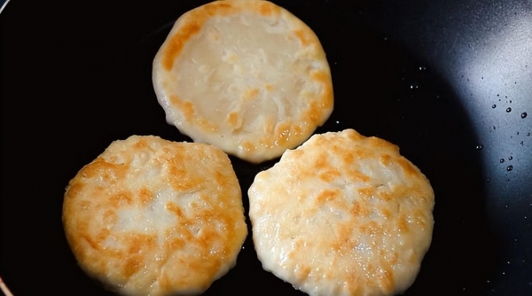 4. 平底锅加热植物油,放入糖饼胚,中小火煎至两面金黄即可。