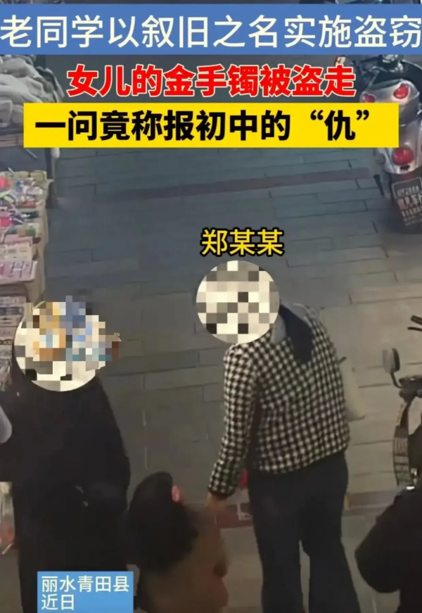 浙江丽水,一则哭笑不得的新闻引爆了社交圈。一位女子,借叙旧之名,竟偷偷地拿走了老同学女儿的手镯。而当被问及动机时,她的回答更是让人目瞪口呆,声称是为了报复初中时期的一桩"仇"。