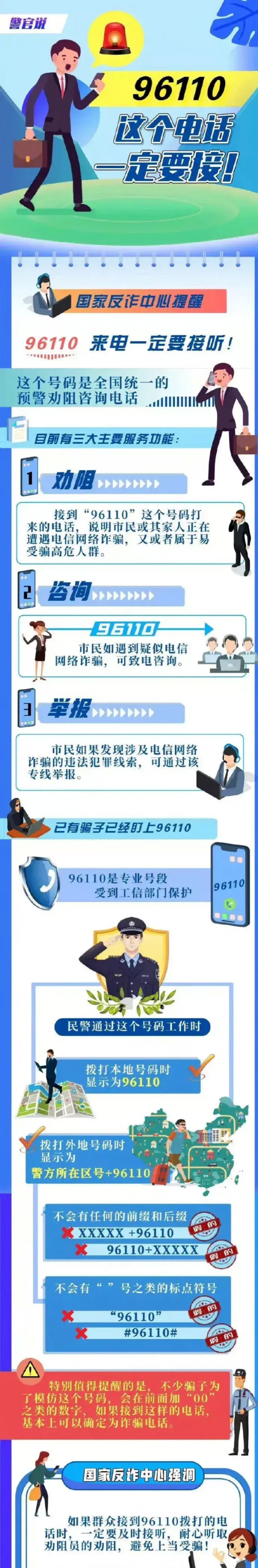 为何这一号码如此关键?随着科技的发展,电信网络诈骗手法日新月异,往往令人防不胜防。不法分子利用各种手段获取个人信息,再通过伪装成公检法、银行、客服等身份进行诈骗,手段之狡猾令人咋舌。而一旦受害人上当,不仅面临经济损失,更可能因个人信息被盗用而陷入无尽的麻烦。96110正是这样一个"警报器",它能在关键时刻提醒群众保持警惕,避免落入陷阱。
