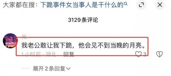 随后,有东北女子在评论区回复道,"如果是我老公,我会让他下跪,他会看不见当晚的月亮",十分霸气。