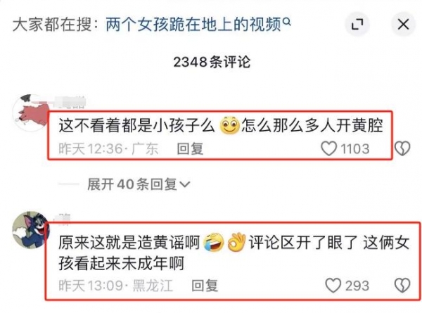 有不明所以的网友问道:"这俩女孩一看就很年轻,甚至未成年,为何评论区那么多人在开黄腔"?