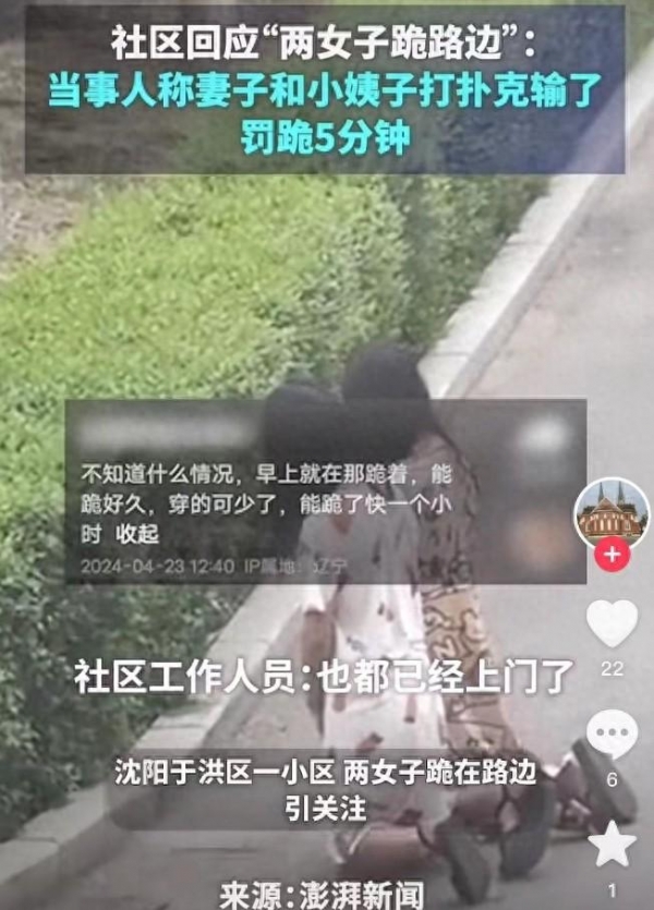 4月23日,"沈阳俩年轻女子大清早在街边罚跪1小时"的新闻,引发了广大网友的关注。