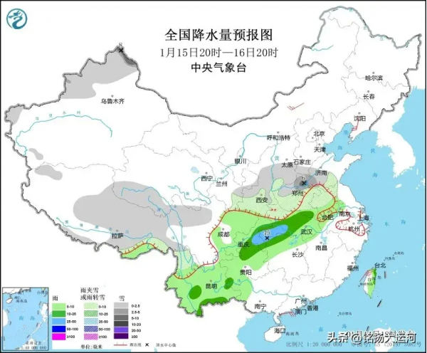 1月15日将迎来新一轮强降雨,以及自2024年以来最强寒潮冷空气。