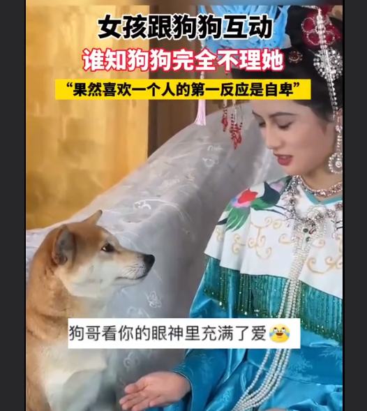 2月22日,四川,一女孩想跟狗狗互动,谁知狗狗完全不理她。第一次在狗狗的眼神中看到自卑,女孩想跟狗狗互动握手,谁知狗狗要么盯着女孩看,要么低着头不敢抬头。